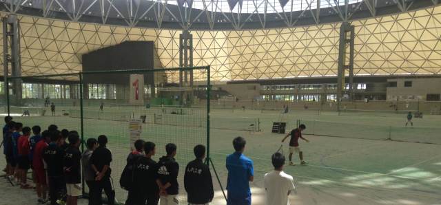 この勢いで次をキープし、1ブレイクすると同点に追いつけるかと思いましたが、さすがに団体優勝校選手、引き出しの多さでゲームを奪われ2−6で敗退となりました。