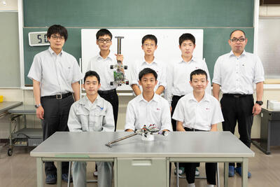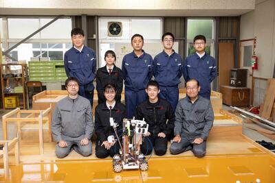 機械製作部では、毎年10月に開催される全国高等学校ロボット競技大会への挑戦に向けて活動しています。 また、熊本県高校生アイデアロボット競技大会で入賞を目指して活動しています。 毎年、日本各地の特色にちなんだ競技ルールや課題に合わせて競技コートから製作し、競技用ロボットの試作、操縦練習を重ね、大会に出場しています。この部活でロボットの部品製作をはじめ、制御回路、操縦調整、改良等、ものづくりの楽しさと課題をクリアする喜びを一緒に体験してみませんか。