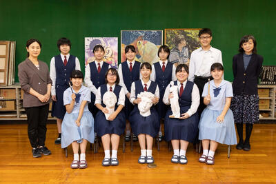 こんにちは!英語クラブです。英語クラブでは、ALTの先生との会話練習を中心に週1回活動しています。「好きな〇〇」や「週末何をしたか」など、様々な話題について英語でコミュニケーションすることを学んでいます。日常生活で使う簡単な英会話を中心としているので、みんなリラックスして楽しく活動しています。今後は英語検定にも挑戦してみたいと考えています!