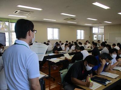 本日は夏期休業中の生徒登校日であり、1時間目に「マイスター・ハイスクール事業に係る第1回アンケート」を実施しました。