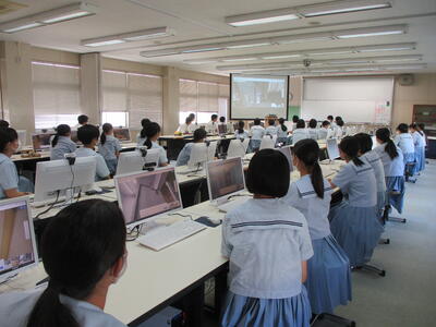 テーマは「AI」についての講話をしていただきました。pythonというプログラミング言語を用いて、実際にプログラムを作成していました。生徒は初めて扱うpythonに難しい表情を浮かべていましたが、作成したプログラムが動いた時には成功した充実感の表情を見せていました。