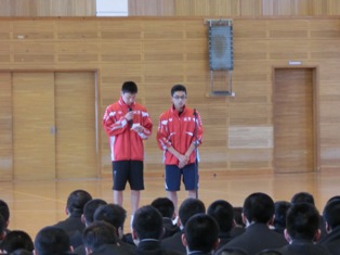 午後からは対面式が行われ各クラスの1年生代表が先輩たちに挨拶をしました。