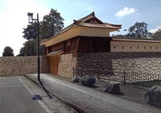 インテリア科3年生の課題研究グラフィックデザイン班で、八代城跡の石垣と、未来の森ミュージアムにある模型をコンピュータグラフィックスで合成し、現在の石垣にお城があったらどうなるかをつくってみました。