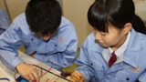 ・正直、目は疲れるしずっと集中していないといけないのできついです。でも、作り終わった後の製品を見てとても達成感があります。また、先生に「きれいにできてますね」と言われた時はテンション上がります。(2年 女子)