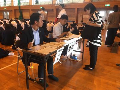 本日午後より熊本県域の企業や大学、専門学校などによる進路説明会が2・3年生と、保護者対象に開催されました。