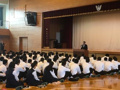 講師の一般社団法人日本自動車連盟の前川様より「ドライバー・自転車・歩行者から見た交通安全」という演題お話しいただいたことで生徒たちの交通安全意識と交通マナーの向上につながったと思います。