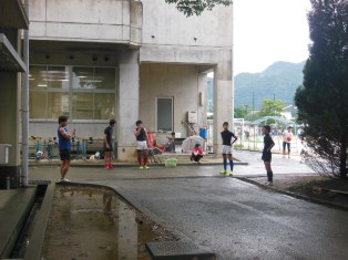 陸上部、サッカー部、テニス部、ソフトテニス部から部員を出し合い2時間の活動を行いました。