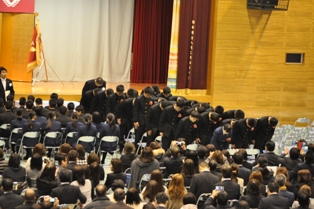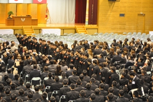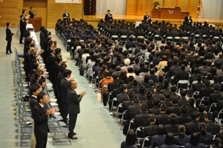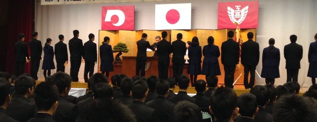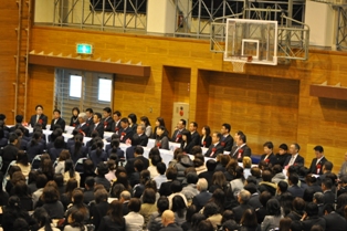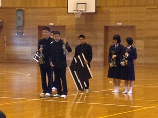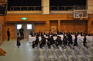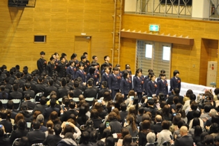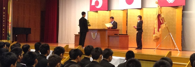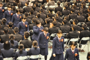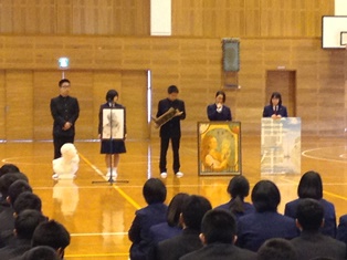 祝詞祝電披露の後、在校生総代送辞・卒業生総代答辞