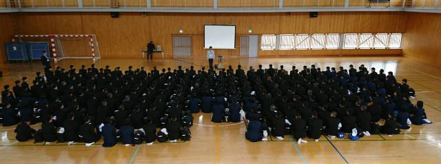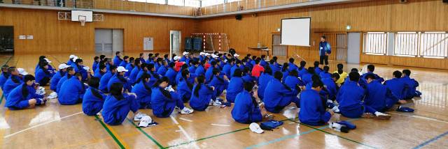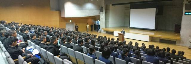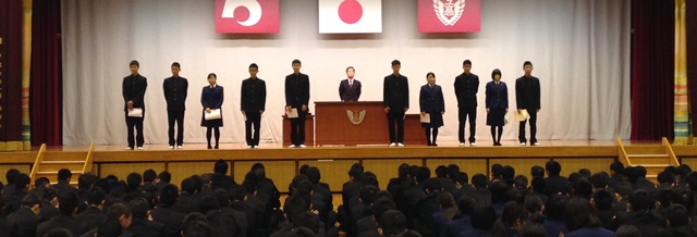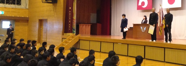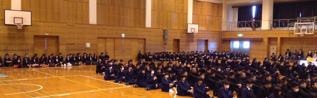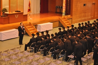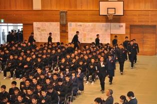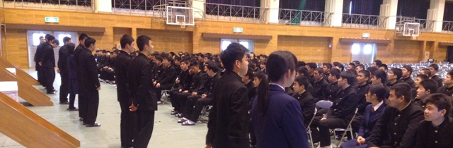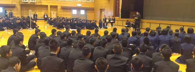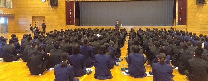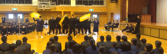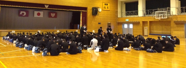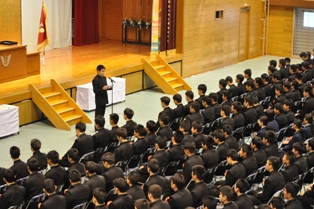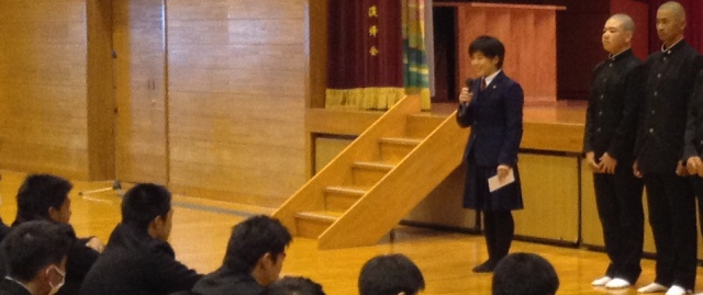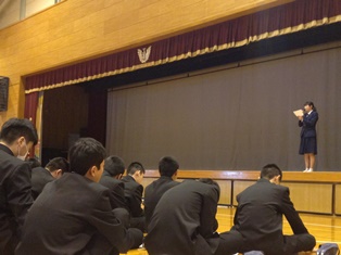 進路指導部や生徒指導部より今年の状況や、これから卒業式に向けて、社会人になってからに向けての話がありました。