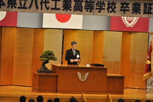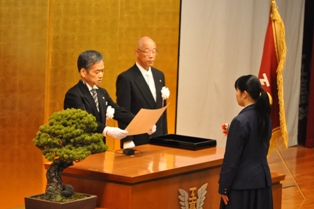 県議会議員祝辞紹介の後、同窓会会長、PTA会長の祝辞