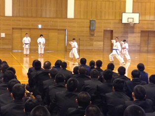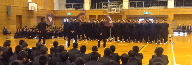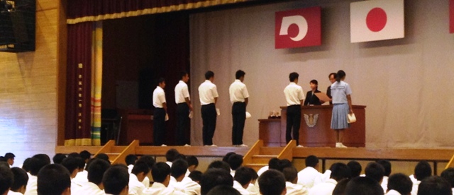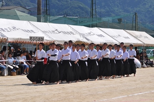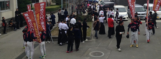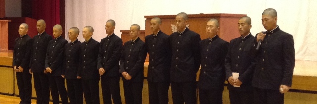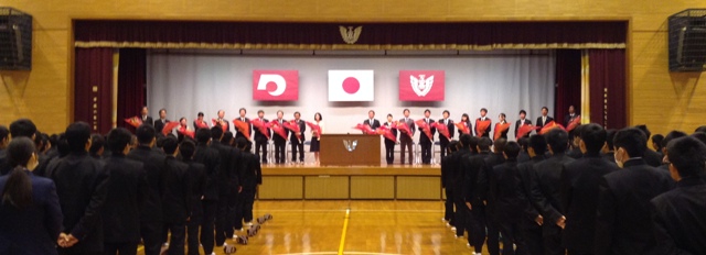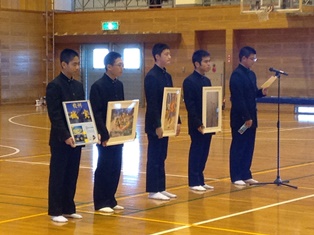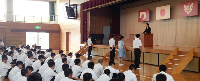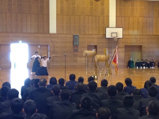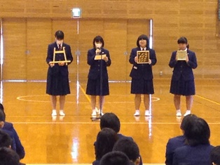 その後、九州大会に出場する女子弓道部と柔道部の選手推戴式が行われました。
