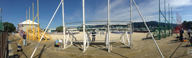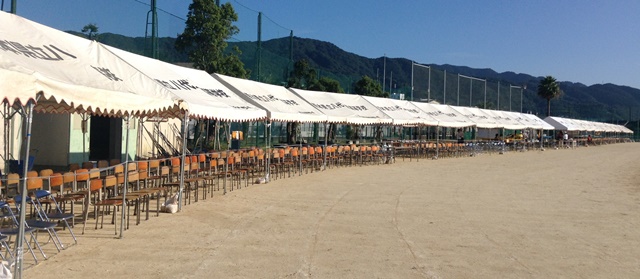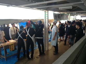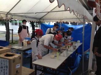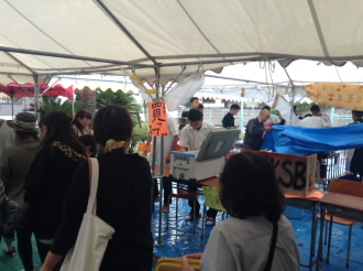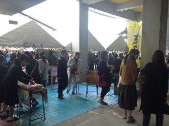 ステージ発表後はバザーの準備。各テントが雨の対応に追われていました。
