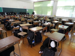 11月2日(木)に本校で「防災避難訓練」及び「第2回学校運営協議会」を実施しました。今年度より、本校は防災型コミュニティースクールに指定されているので、学校運営協議会の方に防災避難訓練の様子を見ていただいた後、第2回学校運営協議会を行いました。