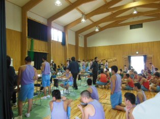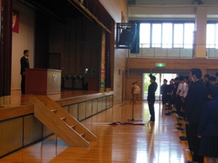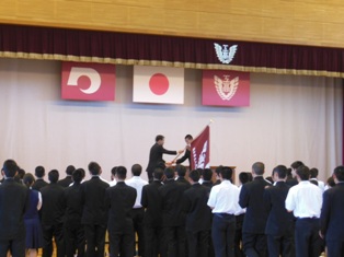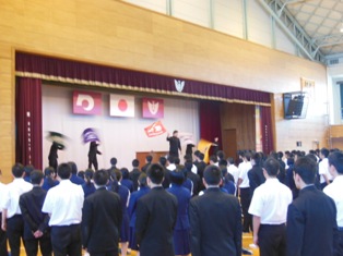 考査が終わり、体育館で高校総体の推戴式が行われました。