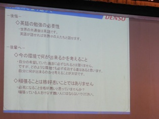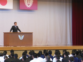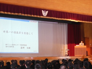 本日は6限目に平成22年機械科卒の湯野様による創立記念講話が行われました。