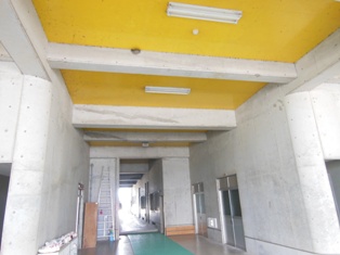 左の写真は新しい武道場の内部です。実は何気に世界初の工法とかなんとか…。