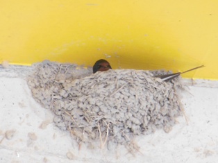 先日建設中でしたツバメの巣に親鳥の姿がありました。