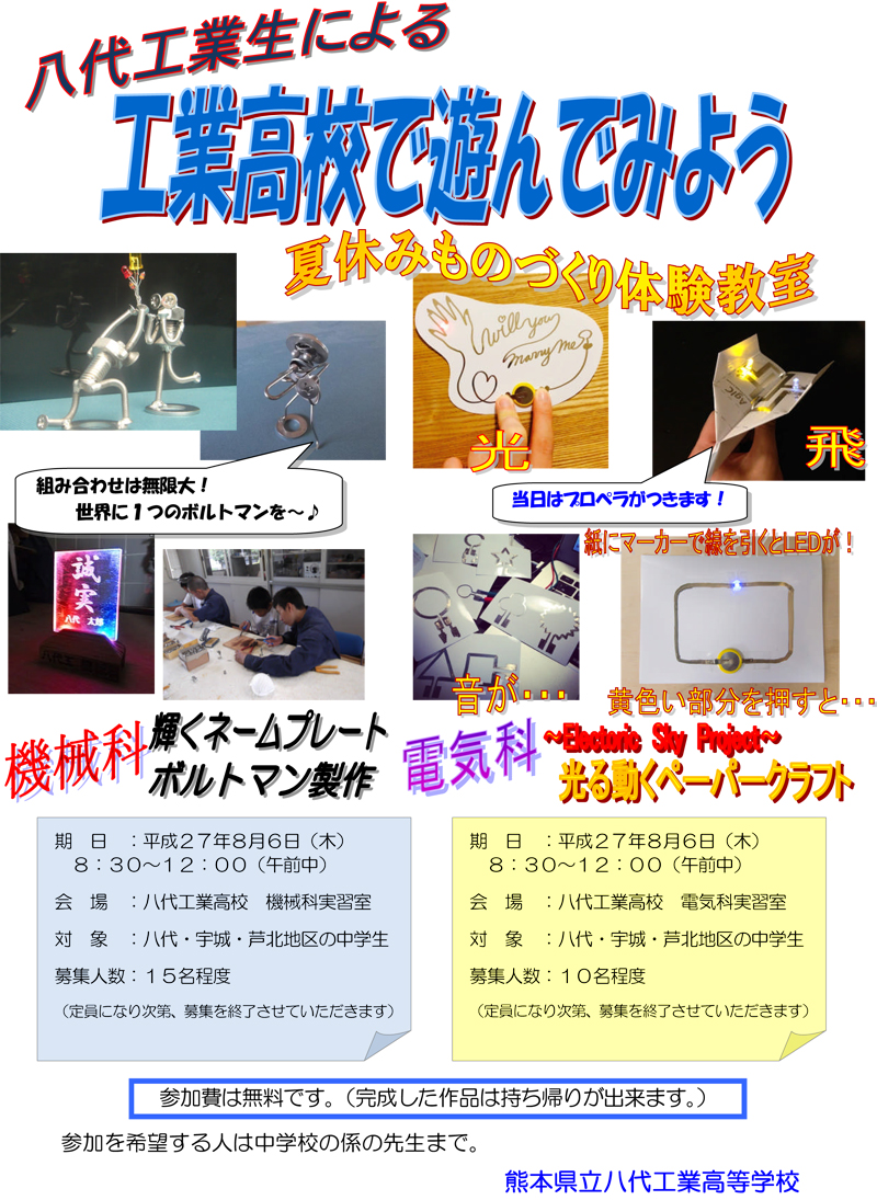 これまでとは一味違う、八代工業高校の文化祭になると思いますので、みなさん一緒に祭りを