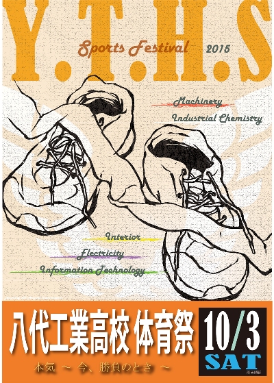 今年度の体育祭・文化祭のテーマは「本気~今、勝負のとき~」です。昨年度、八代工業高校は創立70周年を迎え、節目としていろんな取り組みをしました。71年目の今年もまた、私たちにとってかけがえのない大切な「今」です。よりよい学校にするため、生徒全員が本気で取り組み、学校全体を盛り上げていきたいという思いを、このテーマに込めました。これまでとはひと味違う八代工業高校をご覧いただけるよう、「本気」を合言葉に、生徒一同頑張ります。(生徒会長:島崎祐里乃)