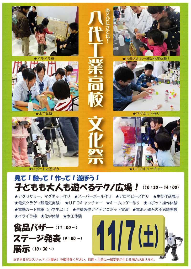 11月7日(土)八代工業高校にて文化祭を開催いたします。