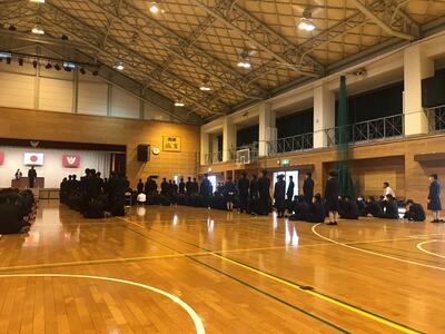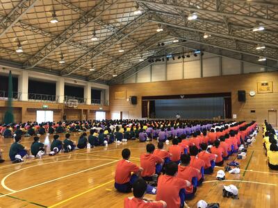 校長訓話では染村新校長の教育スローガン「考え、気づき、行動する」