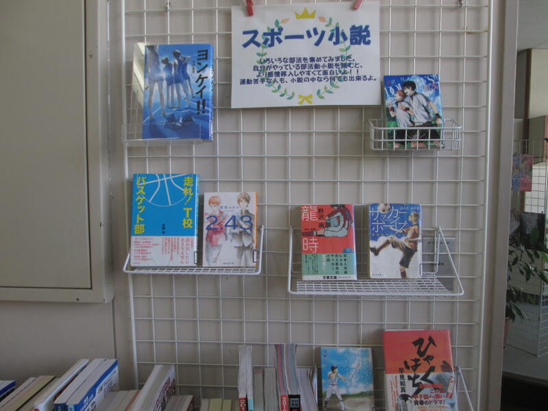 図書館入り口にはスポーツ小説が展示されています。