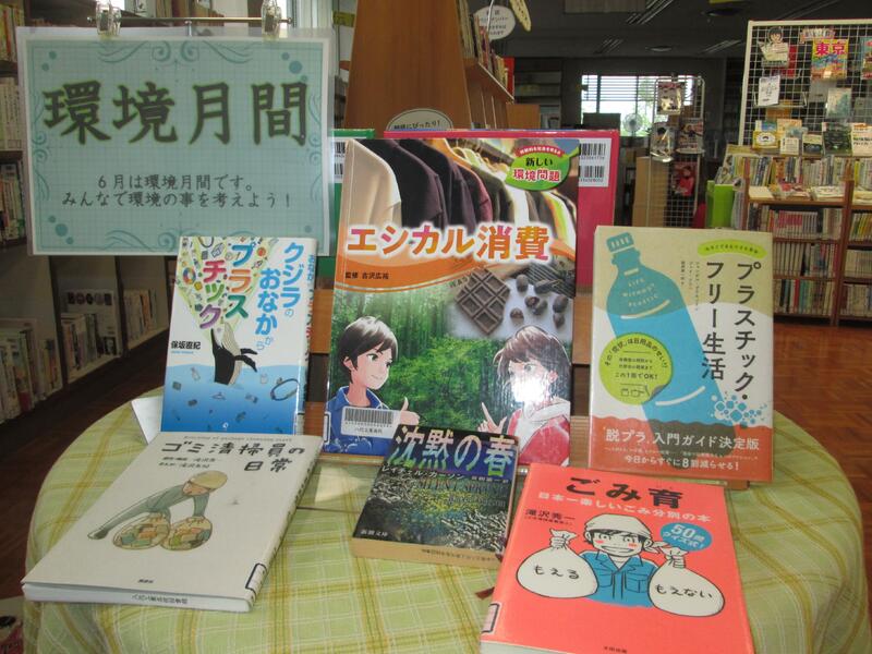 6月の展示は、「環境月間」と題して、環境問題を考える本を展示しています。