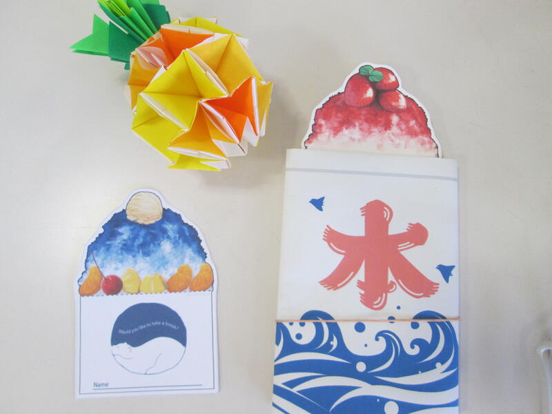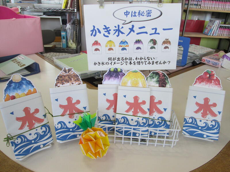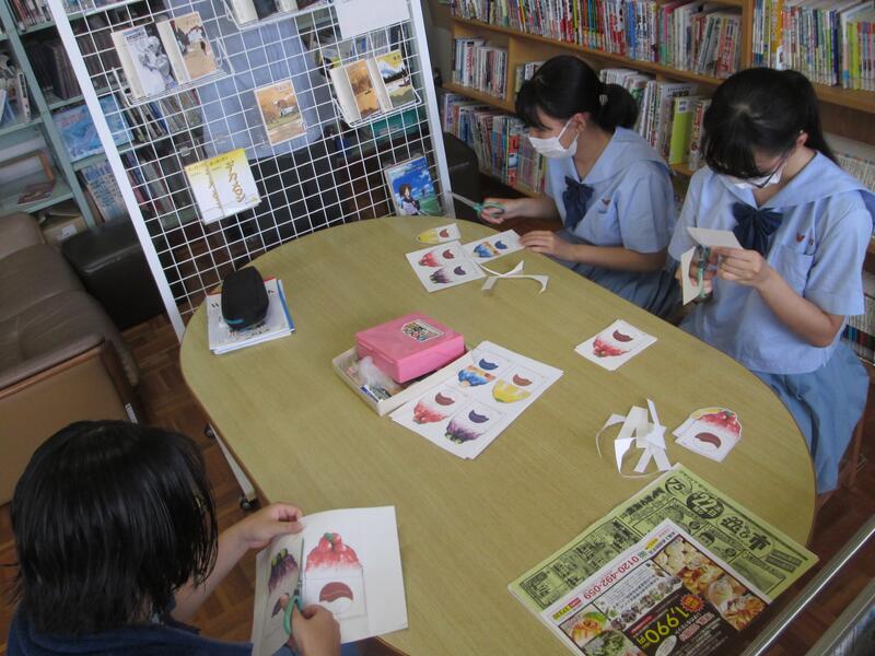夏休みの貸出しに向けて、図書委員の生徒達が「かき氷」のしおり製作に取り組んでいます。