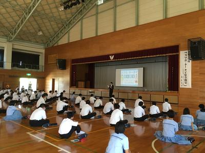 講師の一般社団法人日本自動車連盟の前川様より「ドライバー・自転車・歩行者から見た交通安全」という演題お話しいただいたことで生徒たちの交通安全意識と交通マナーの向上につながったと思います。