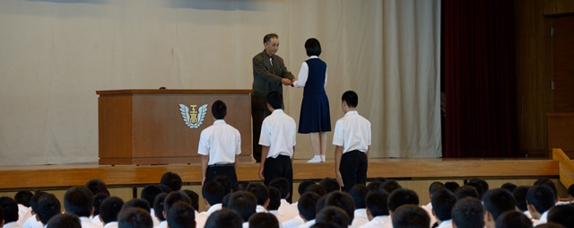 本日は3年生の表彰式、卒業式予行、同窓会入会式がおこなわれました。