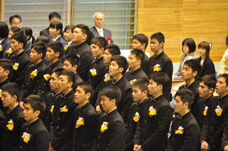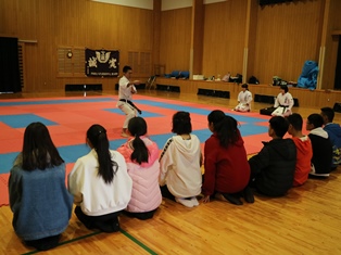 その後、九州大会に出場する女子弓道部と柔道部の選手推戴式が行われました。