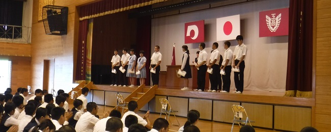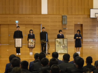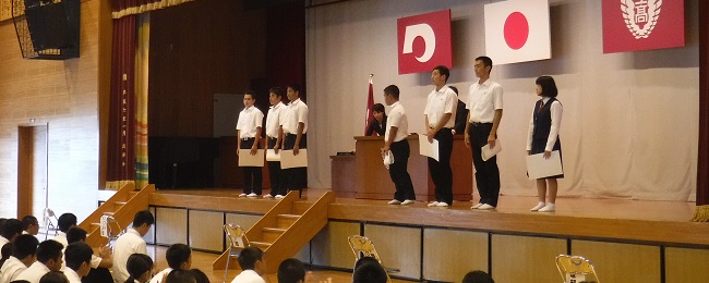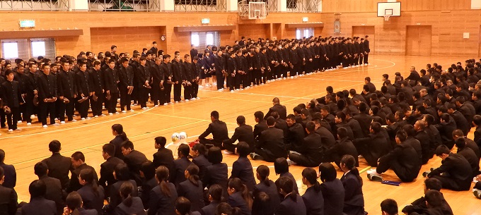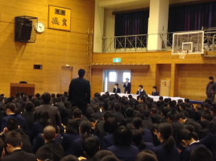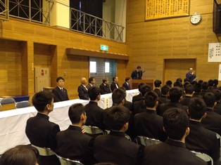 考査終了後に城南大会の表彰式と、高校総体・総文祭の推戴式が行われました。