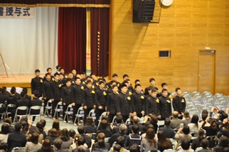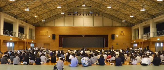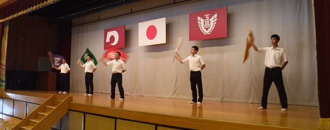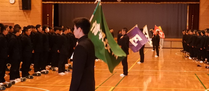 各科ごとの学習内容や歓迎の挨拶を各科の団長が行い、それぞれの応援歌を披露しました。工業高校は科のつながりが強いことを自覚し、八代工業高校生としての自覚を促す行事となります。