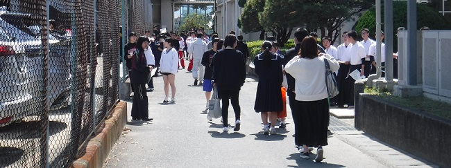 さて、テスト前問うことで、先日よりあいさつ運動と登下校の交通安全運動を行っています。