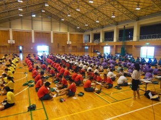 全校生徒、全職員による人権ロングホームルームが体育館で行われました。