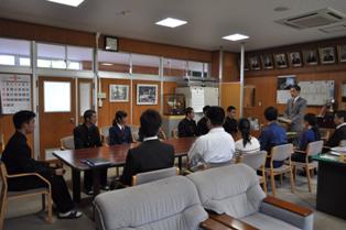 全体のインターンシップ指導の前に、平成28年度専門高校生による海外インターンシップ事業に派遣される鶴島くんの紹介がありました。