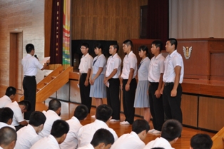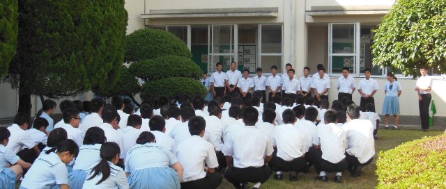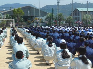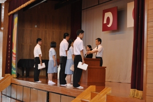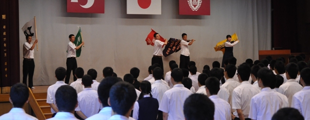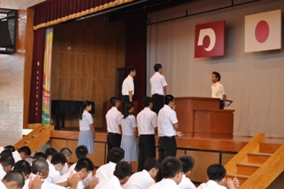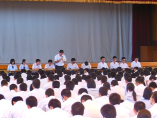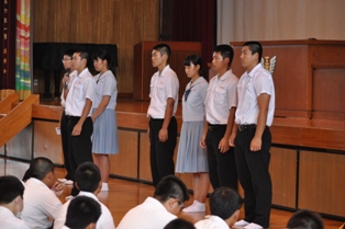 陸上部と写真部の表彰式と、九州大会の推戴式が行われました。