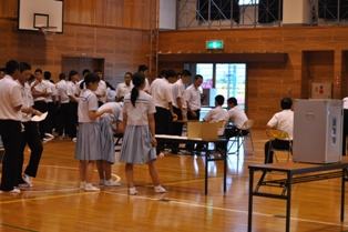 今日は1年女子の夏服販売、耳鼻科検診、そして3年生は校内模試が行われました。