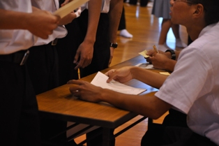 8月10日の登校日、交通安全教育としてロールレタリング(役割交換書簡法)が実施されました。