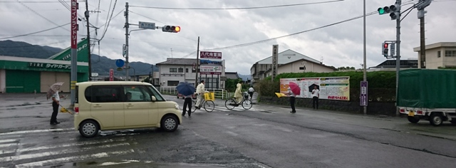 6月21日~23日の3日間、学校周辺の交差点などで交通委員会による交通安全運動が行われています。