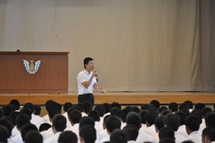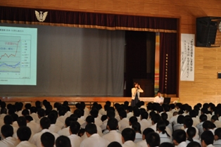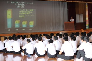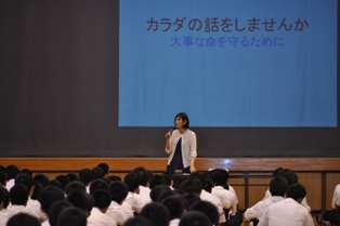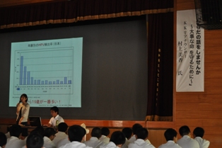 ご自身の闘病経験と、多くの患者さんとの交流から発信される言葉と、わかりやすいプレゼンテーションで生徒たちは最後まで真剣に耳を傾けていました。