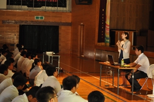 本日6限目、明日からの修学旅行を控えた1年生の集会が行われました。