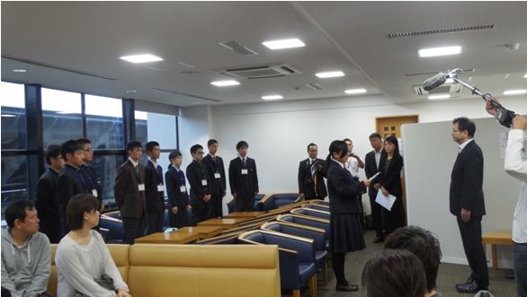 出発式では高校教育課課長から、①異国での安全・健康に注意し、危機管理能力を身につけること②何事にも積極的にチャレンジすること③研修に参加できる感謝の気持ちを持つことの3点を心掛けるようにと激励の言葉を頂きました。