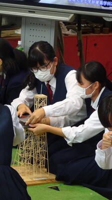 第10回つまようじタワー耐震コンテスト高校生大会カテゴリーⅡは、34組が出場し、本校からは4組が参加しました。成績は、1~3位を独占するという最高の結果で終えることができました(4組とも決勝進出)。最後の3組は、主催者側が予想していたよりも大きな重量(16kg)に耐え、周波数も規定以外のもの(1.5HZ等)で揺らされましたが、3基とも耐え凌ぐことができました。製作した生徒にとっては大きな自信になったようです。主催者側は、何とかタワーを破壊しようと挑んできましたが、これ以上は難しいということで、競技規則によりタワーの重量が一番軽いものを優勝、次を準優勝、3位ということで順位が決まりました。