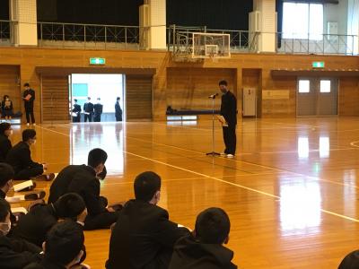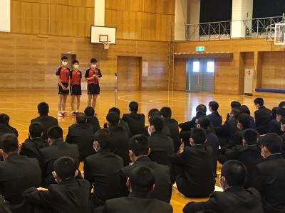 終業式後に各部活動のキャプテンを対象にリーダー研修がおこなわれました。