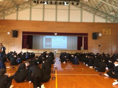 講師の一般社団法人日本自動車連盟の前川様より「ドライバー・自転車・歩行者から見た交通安全」という演題お話しいただいたことで生徒たちの交通安全意識と交通マナーの向上につながったと思います。