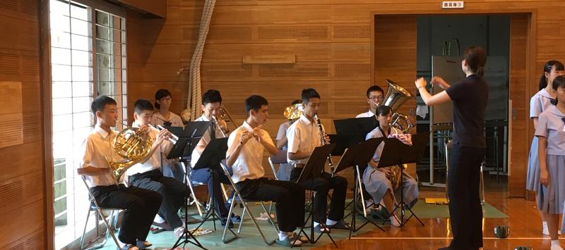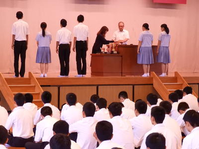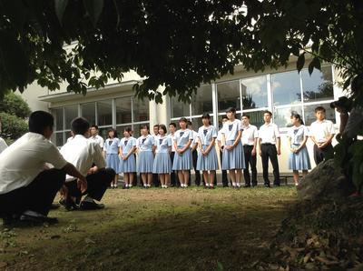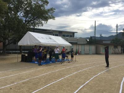 閉会行事で軽音楽部の演奏と、生徒研究発表。