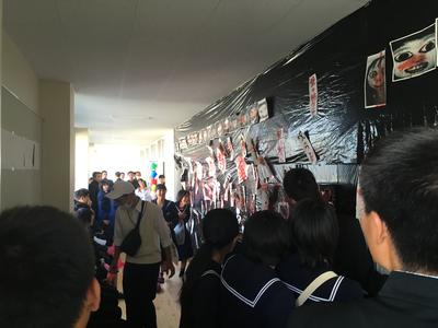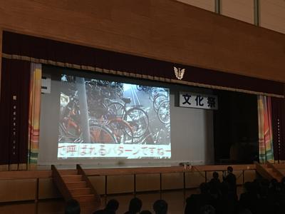 2日目はまず体育観でのステージ発表が行われ、吹奏楽部による演奏、委員会発表、1年生によるクラス発表がおこなわれました。