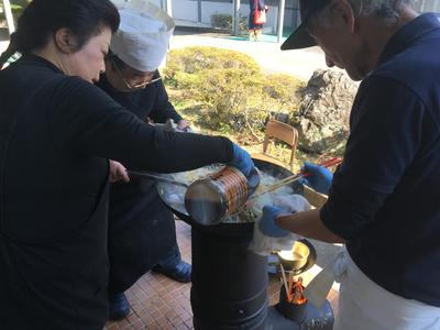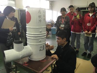 機械科ピロティで定時制やロケットストーブの実演と太平燕の振るまい