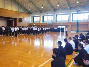 考査が終わり、体育館で高校総体の推戴式が行われました。